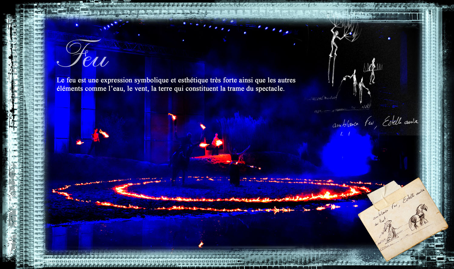 · Le feu, l’eau, la brume , la beauté et la finesse des éclairages, enrobent et révèlent délicatement et efficacement le jeu artistique.