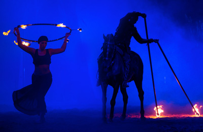 · L’union des arts vivants, depuis l’art équestre jusqu’à la musique, le chant, la danse et la peinture en live.